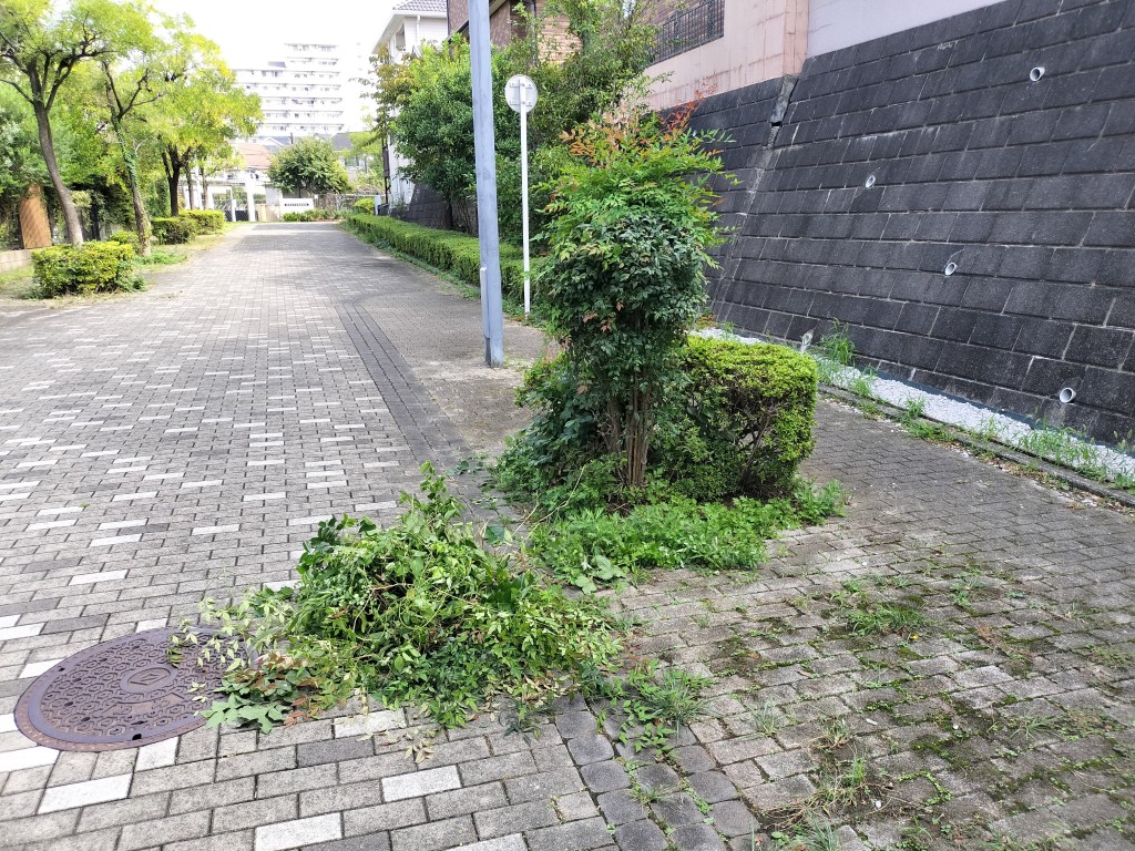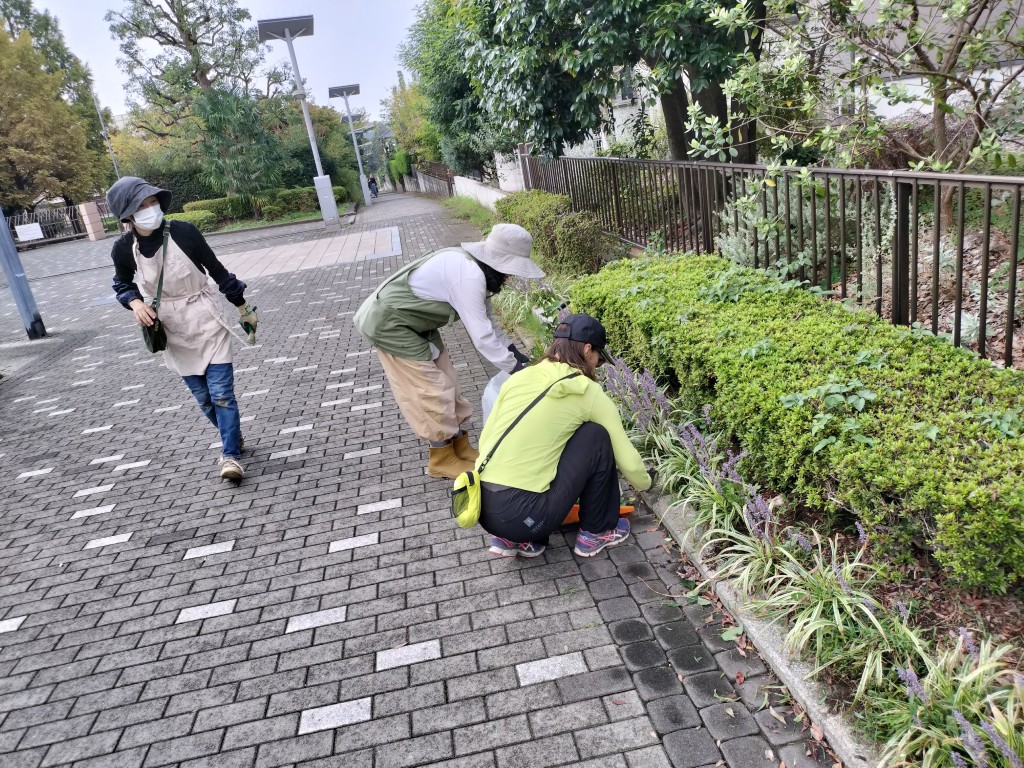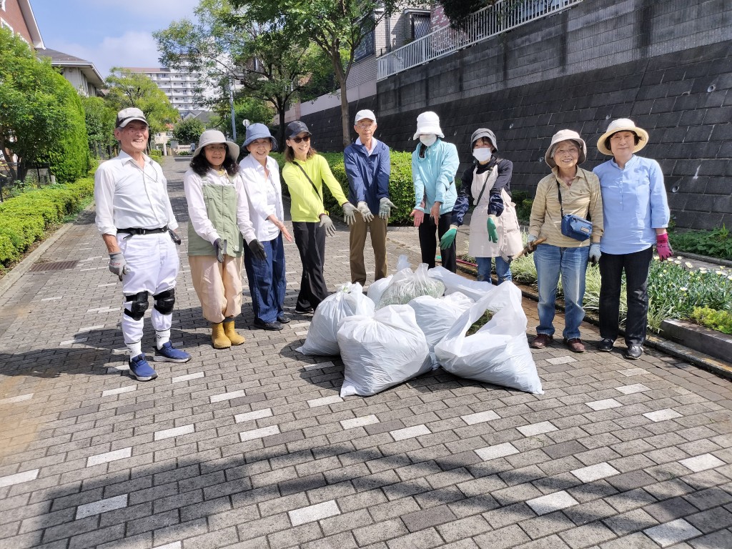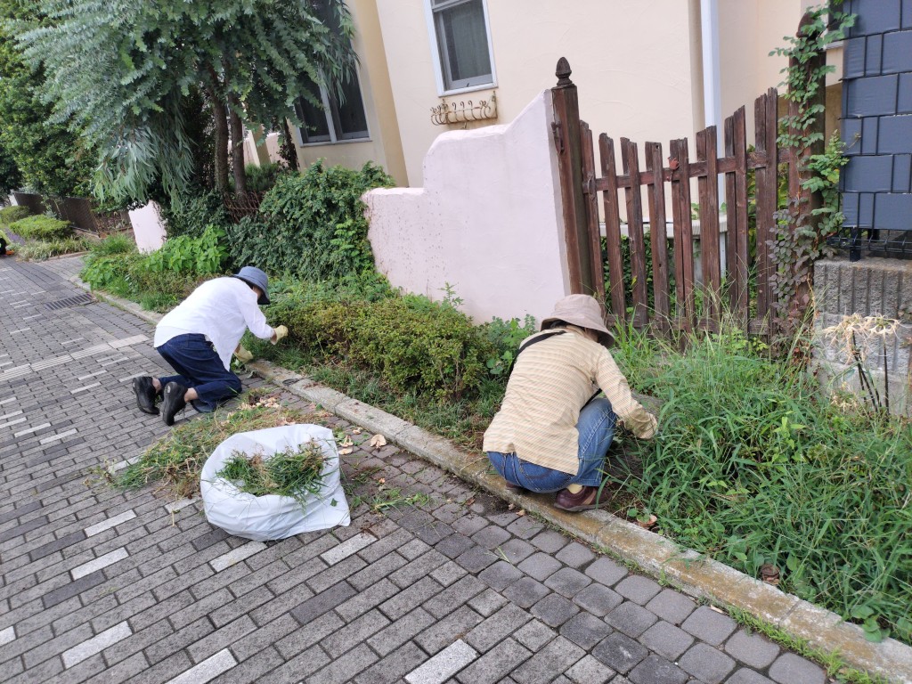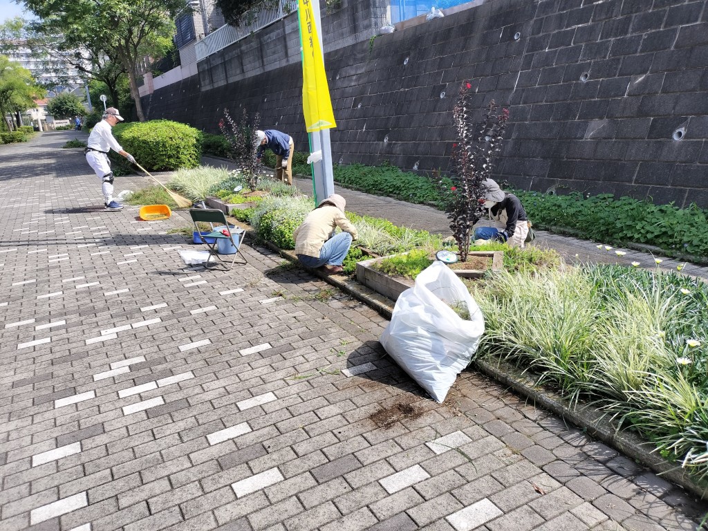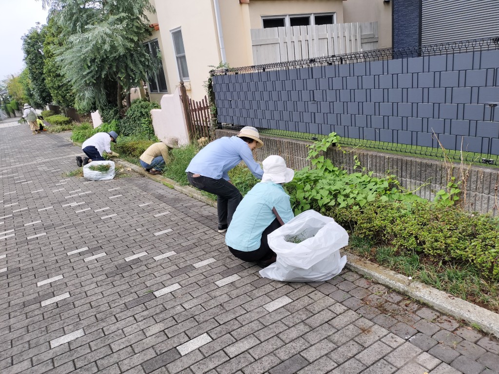 10月5日(土)10時から中川緑と水と歴史をつなぐ会(つなぐ会)の呼びかけで、周辺住民10人が参加し、中川西遊歩道第2地区(中川西保育園~中川西中学)に作った花壇と植栽を中心に、草取りと剪定を行い、花壇と遊歩道がきれいになりました。