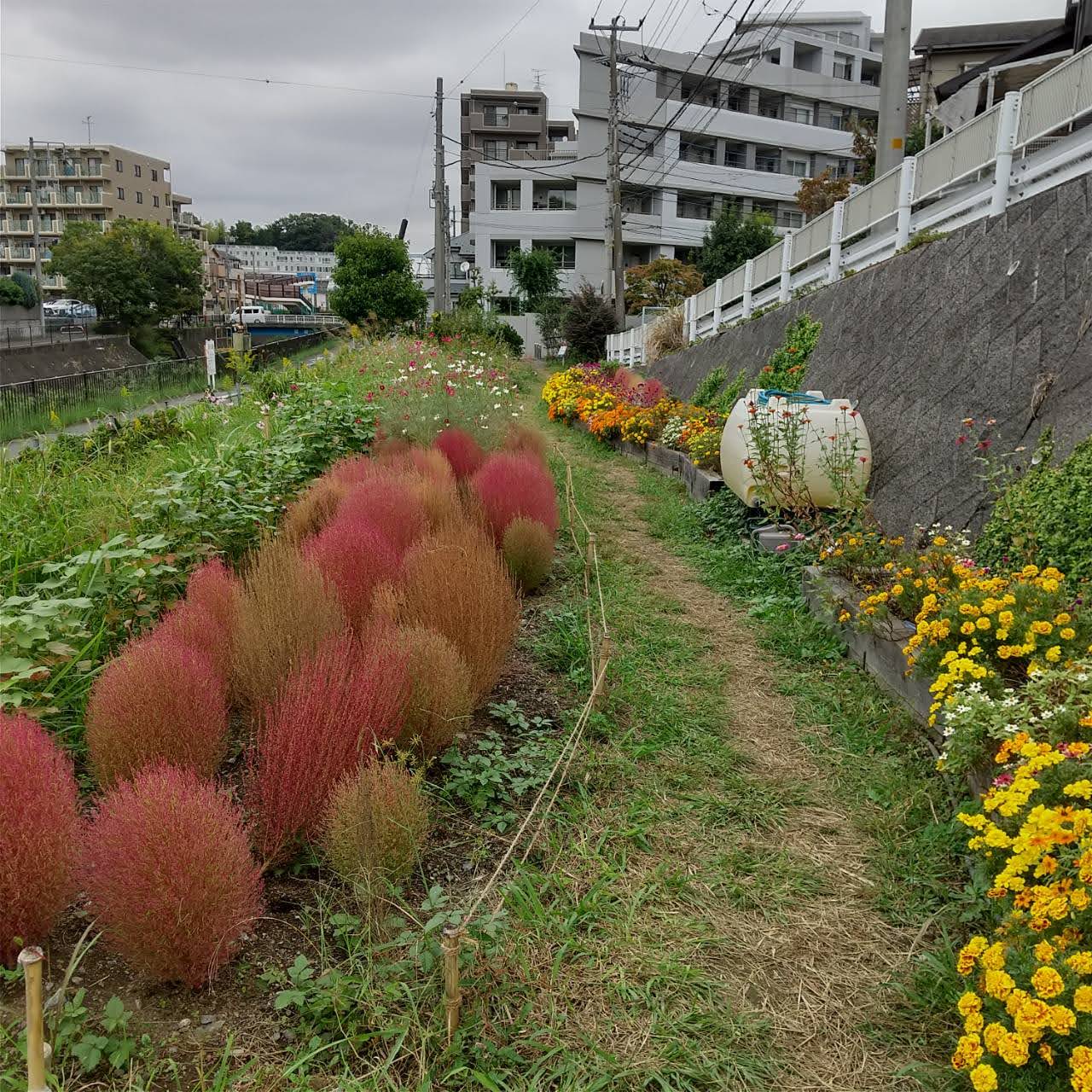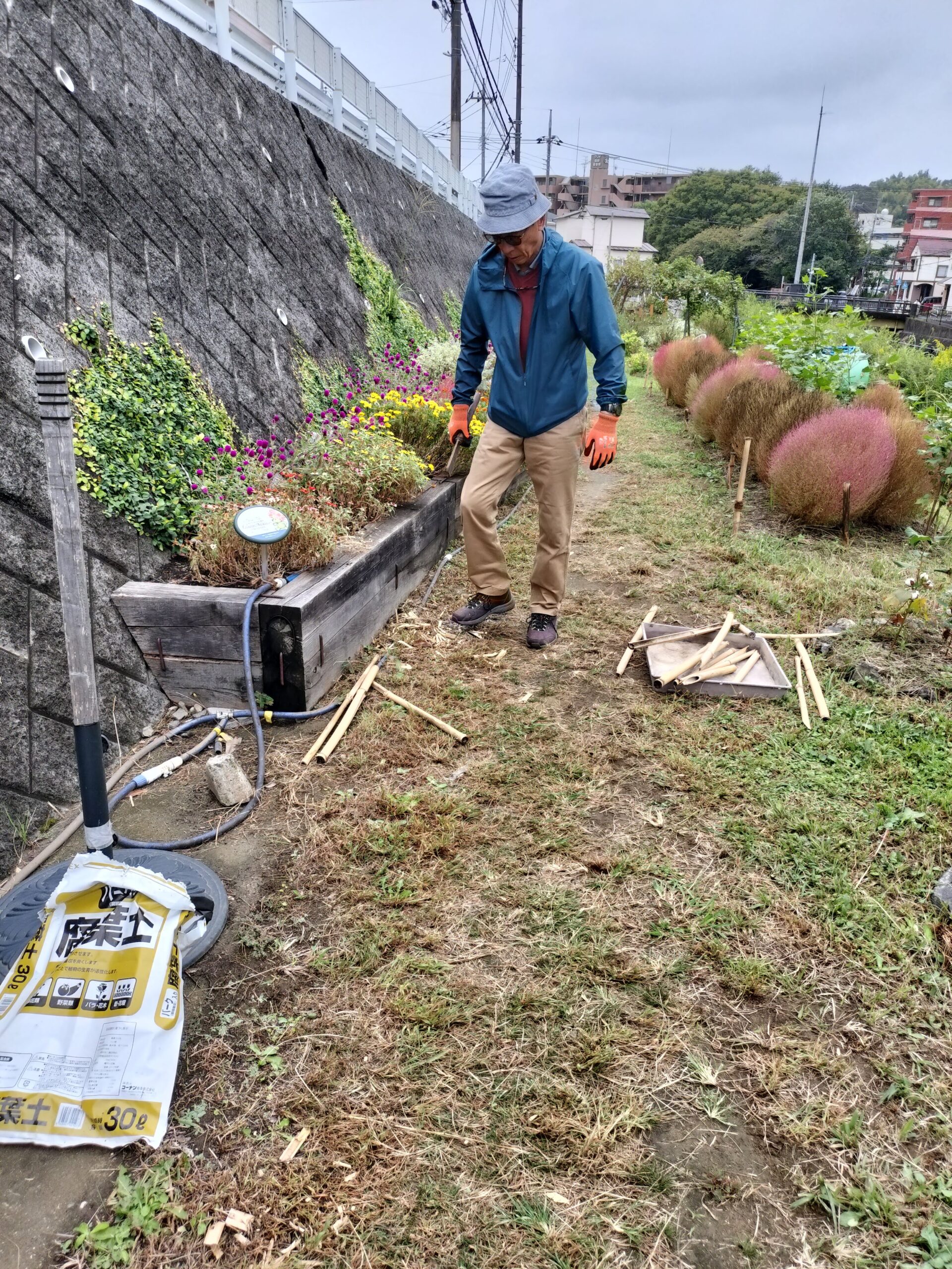 10月15日(水)、9時から11時までの住民7人と老人グループホーム「都筑の春」のベトナム人職員のヴーミンヒエウさんが参加して、コキア祭を目指して整備を行いました。