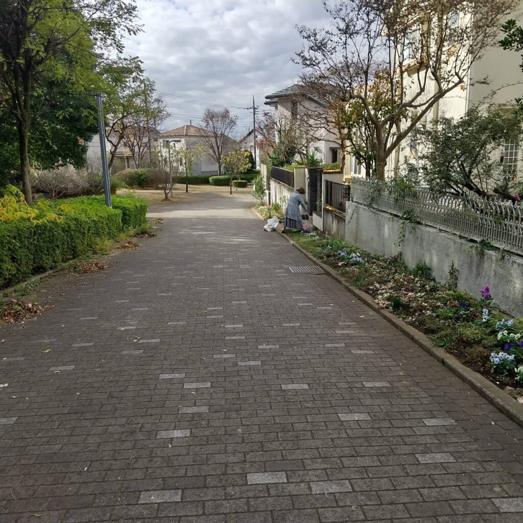 【遊歩道】中川西遊歩道第一地区 - Category - 地域緑のまちづくり活動報告(2025年度), 遊歩道 11/29(土)、中川緑と水と歴史をつなぐ会と周辺にお住まいの方11人は朝10時から中川西遊歩道(烏山公園沿い)と花壇の落ち葉掃き、草取りを行い、中川西のメインストリートはとてもきれいになりました。 遊歩道の草取り 花壇の手入れ
