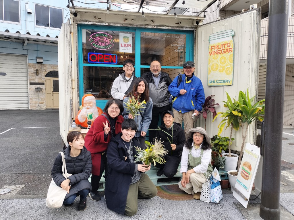 作業終了後、都市緑化研の学生と住民で近くのハンバーガー屋さんでランチ忘年会を行い交流を深めました。そのあとは、町内会館をお借りして、今年の活動と来年の活動について話し合いを行いました。収穫の多い一日でした。