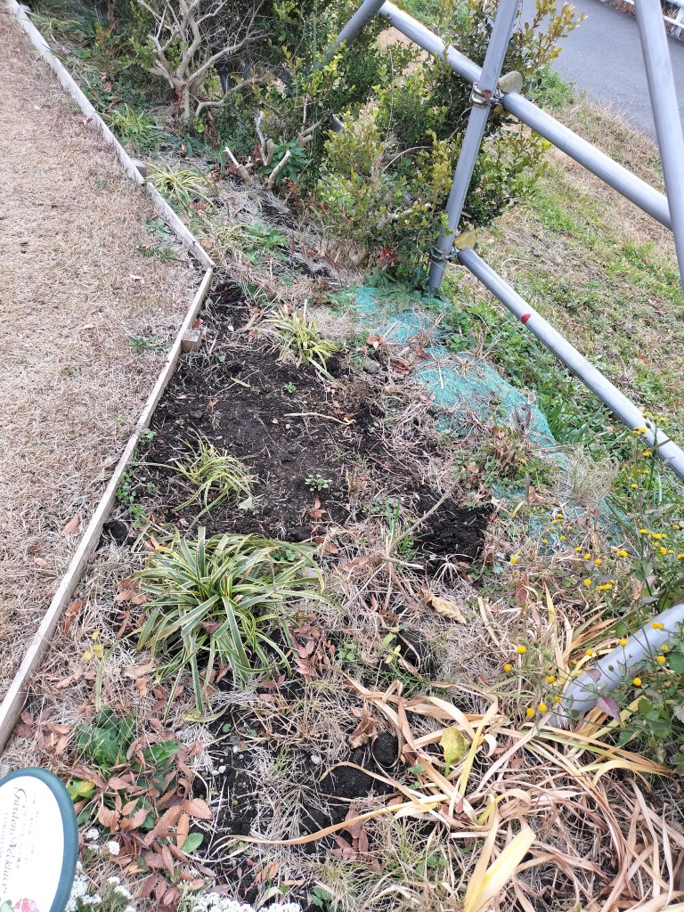 12月17日(水)、10時から住民5人と区役所1人が参加して、のネモフィラ苗とヒヤシンス球根の植込みなどを行いました。今年最後の定例活動日でした。