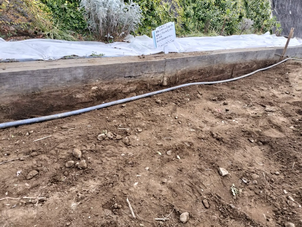 作業は園路を平らにして花壇の埋もれ気味になっていた枕木を掘り出し、新たな花壇用地作りを行いました。新たな花壇には、更にネモフィラの苗を植える予定です。